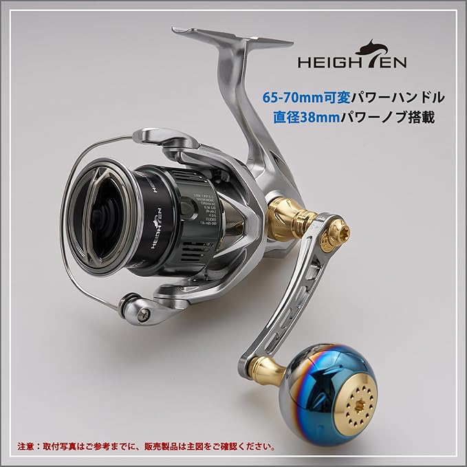 HEIGHTEN 65-70mm可変 リール ハンドル 38mm ノブ搭載 シマノ(Shimano) ダイワ(Daiwa) 通用 スピニングリール 用 Aurora Series (ガンメタル&ゴールド) (1147)