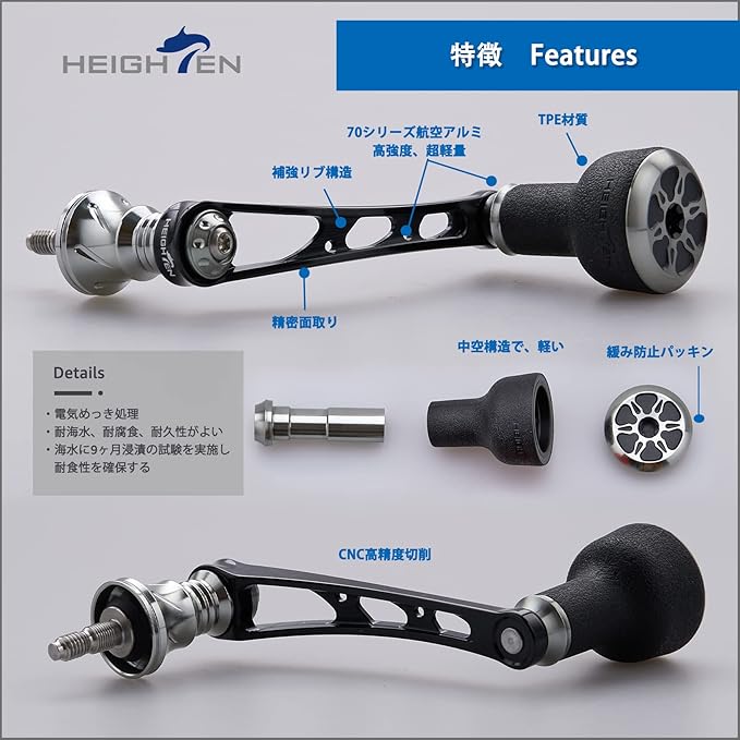 HEIGHTEN 56mm リール ハンドル 24mm TPE製 ノブ搭載 シマノ ダイワ 通用 スピニングリール 用 TPE Series