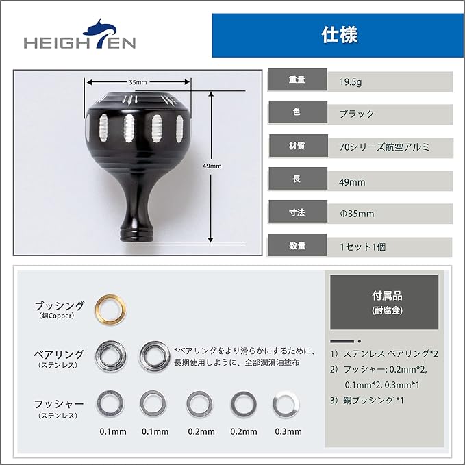 HEIGHTEN 35mm パワー リール ハンドル ノブ 6色 シマノ ダイワ 通用 (Shimano) Type A (Daiwa) Type S 用 70航空アルミ製 Harmer Series V2.0 (ブラック/シルバー, 35mm) (89)