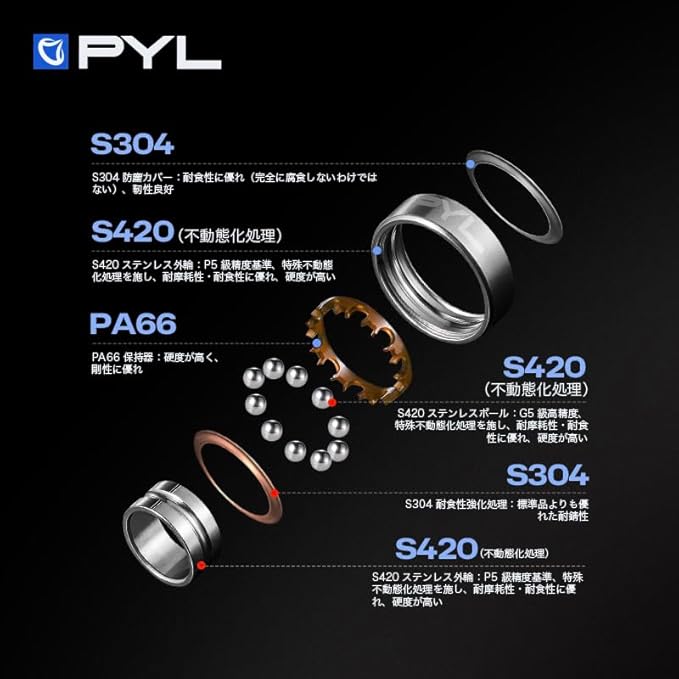 『PYL』ステンレスベアリング 120時間塩霧試験 高防錆 静音設計 リールベアリング 交換用 ルアー釣り ジギング エギング バス トラウト シーバス スピニング ベイトリール 両対応 滑らか 軽量 巻き心地 長寿命 耐サビ 耐腐蚀 海水 淡水 両用 メンテナンス軽減 高耐久 高コスパ
