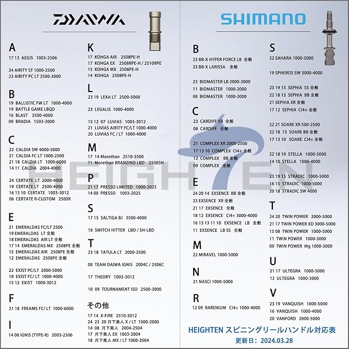 【適応機種】SHIMANO、DAIWAのねじ込み式スピニングリールハンドルの交換に適用。
