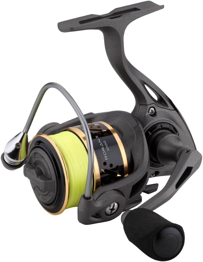 シリーズ:【 ボラン (BORAN) PEライン付モデル】……買ったら釣り場へ直行!すぐに使えるPEライン付きスピニングリール。エギング・チニング・シーバスなどで使いやすい「イエローカラーのPEライン」がラインキャパ分装着済み。エリアトラウト・ライトロック・シーバスなどの目的に合せて、サイズが選べて嬉しい糸付きリール。「PEライン付モデル」は軽量でグリップ性の良いEVAノブを搭載。