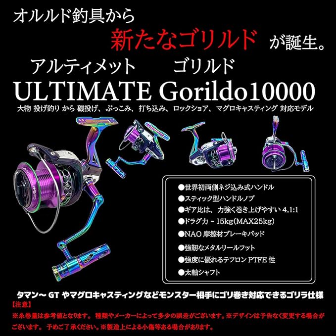 オルルド釣具 スピニングリール ULTIMATE Gorildo アルティメットゴリルド 10000 大物 投げ釣り 磯投げ ぶっこみ 打ち込み ロックショア マグロキャスティング対応モデル qb010301