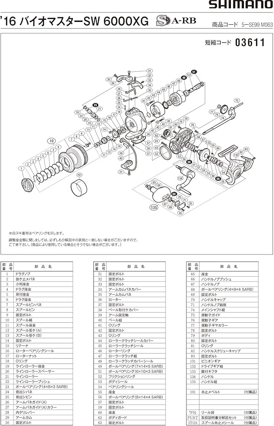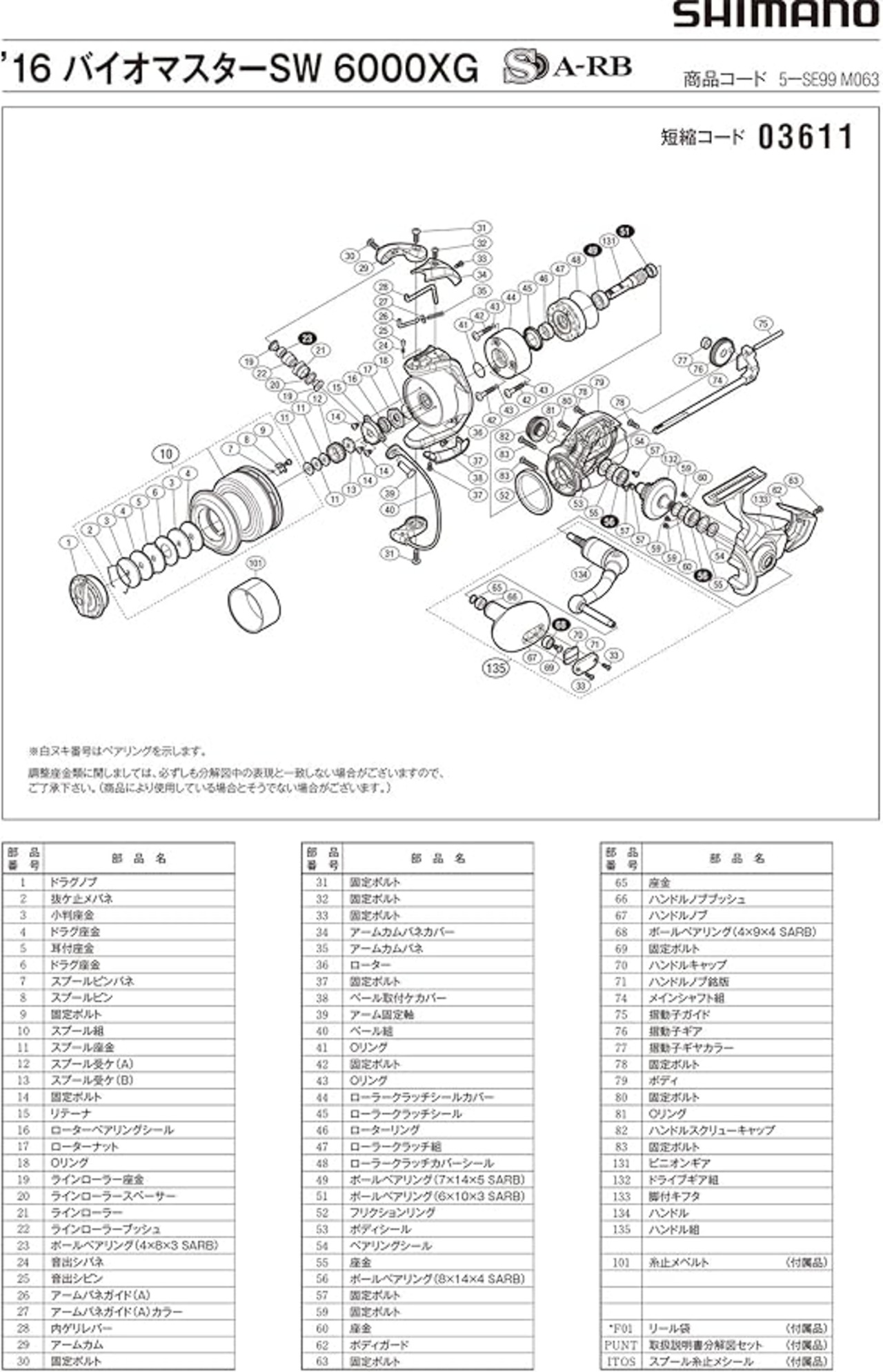 シマノ(SHIMANO) 純正パーツ 16 バイオマスター SW 6000各種用 スプール/ハンドル/ドラグノブ/ハンドルスクリューキャップ
