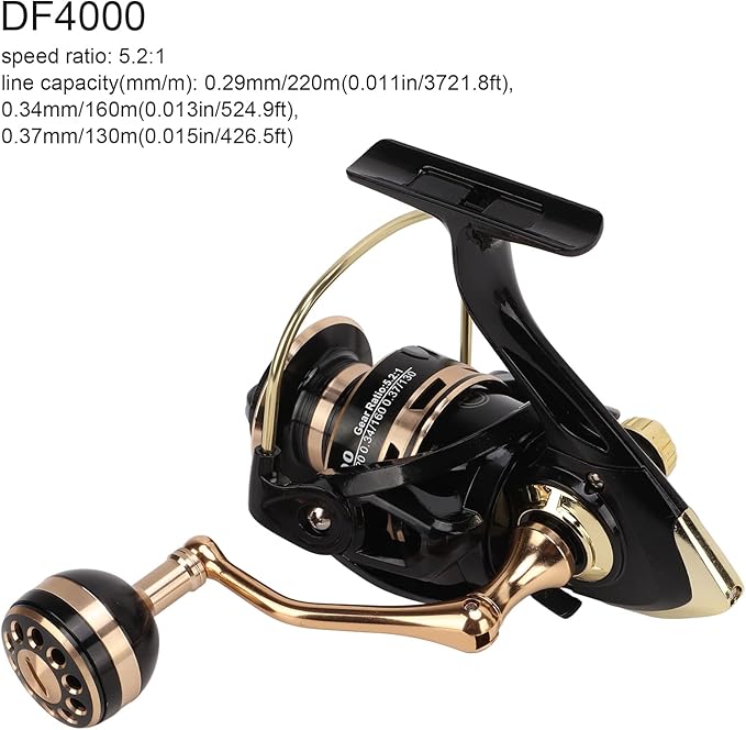 スピニングフィッシングリール、5.2:1レシオストロングブレーキング頑丈でパワフルなメタルローリングホイール、アイスフィッシング用(DF4000)
