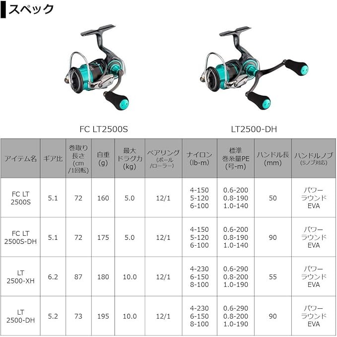 標準巻糸量:ナイロン(lb-m) 6-150 / PE(号-m) 0.8-200