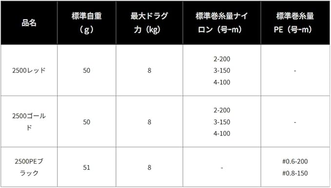 標準巻糸量: PE 0.6号-200m 0.8号-150m