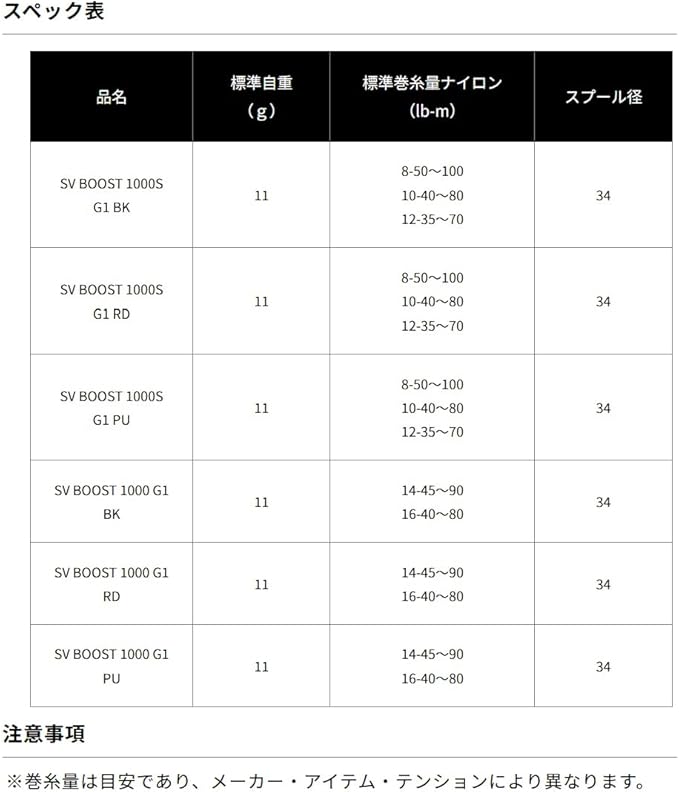 モデル名 RCSB SV BOOST 1000S スプール G1