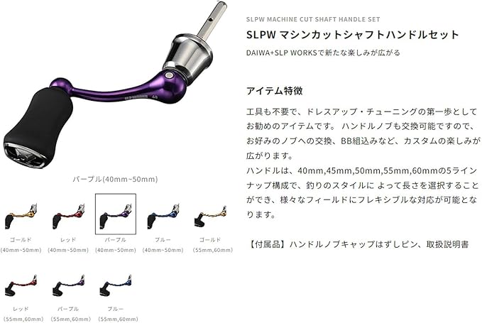 ダイワslpワークス(Daiwa Slp Works) SLPW マシンカットシャフトハンドルセット (Iシェイプ ハンドルノブ付) 50mm パープル