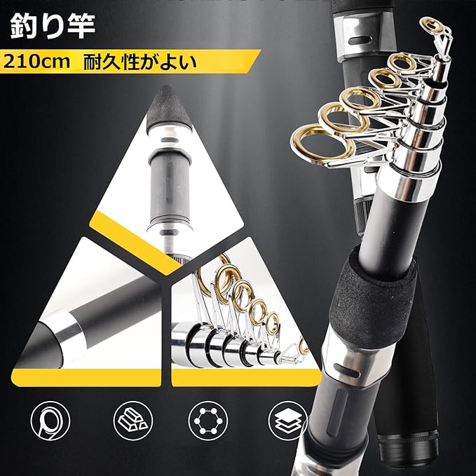 210cm の竿長は「遠投 」から「近場釣り」まで幅広く対応し、単独での「一人釣り」や家族・カップル・友達同士の「一緒の釣り体験」に最適。オールインワン仕様で、「竿を買ってからリールを探す」「仕掛けが足りなくて追加購入」といった手間を省け、初心者が「釣りの楽しみ」に集中できるよう設計されています。