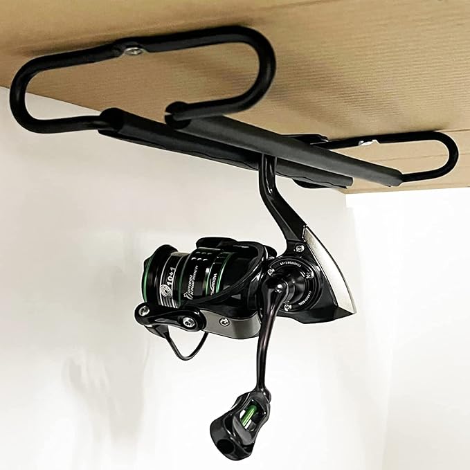 スペースを最大化するために天井に取り付けます。インストールが簡単。ハードウェアが含まれています。貴重なスピニングリールを自分の釣りスペースに飾ってください。