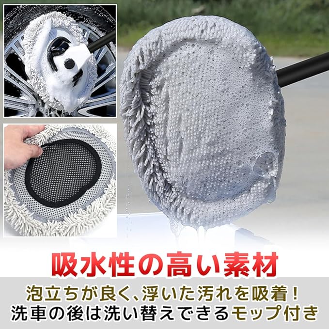 【洗車が楽になる】湾曲型洗車モップ 長さ調整 乾湿両用 吸水性 脚立不要