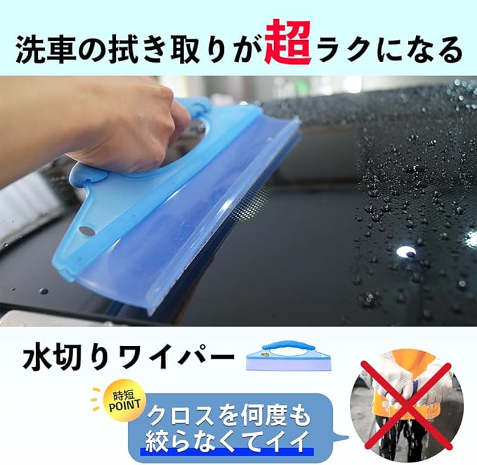 carpika.net (カーピカネット) 水切りワイパー 水色 特殊シリコン使用 時間短縮 洗車用スクイージー 窓クリーニング 便利グッズ 風呂 家庭用窓ガラスにも使用可能