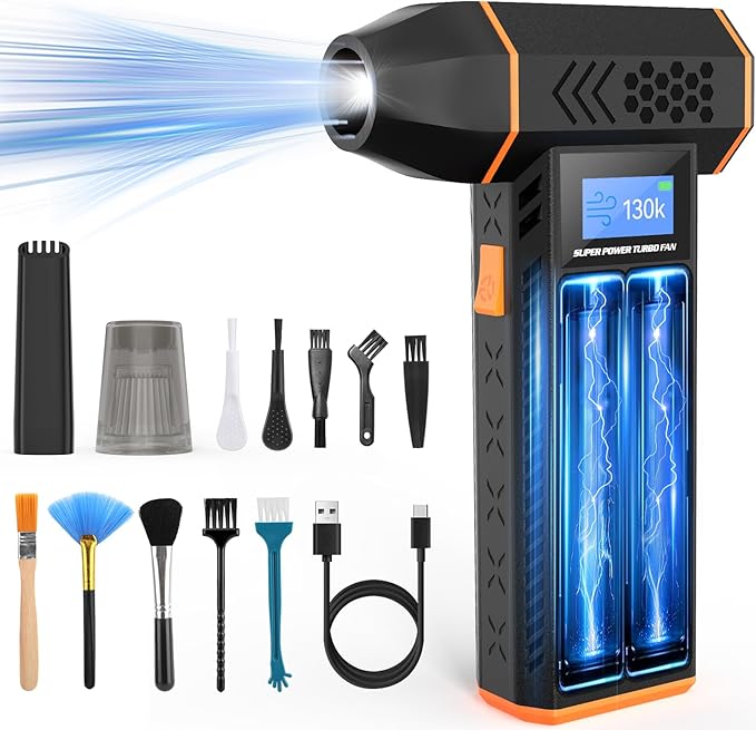 エアダスター 吹き吸い両用 超小型で爆風 エアダスター 電動 ブロワー 洗車 LCDディスプレイ LEDライト付き 6000mAh 4段階風量 ブラシレスモーター 過熱保護 エアダスター pc 掃除/洗車/キーボード/家具/カメラ/車内/エアコン/BBQ送風/落ち葉の吹き飛ばし (ブラシ10枚、日本語説明書)