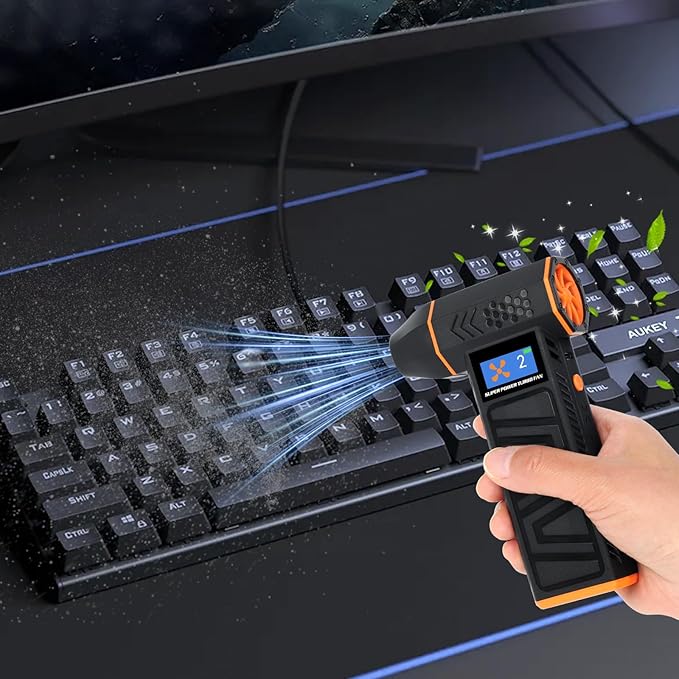 【4段階風速調節&コンパクト】このエアダスターは5段階の風速調節機能があり、使用シーンに合わせてお好みの風力に調整できます。ボタン一つで使いやすいです(風量調節の詳細は日本語と英語を含む多言語の取扱説明書を参照してください。)6000mAhの大容量バッテリーを搭載し、フル充電で最大120分使用可能。Type-C対応で高速充電が可能、コードレス仕様なので電源コードに引っかかる心配もなく安心して使えます。重さはわずか280g で、手のひらサイズのため片手でも持ちやすいです