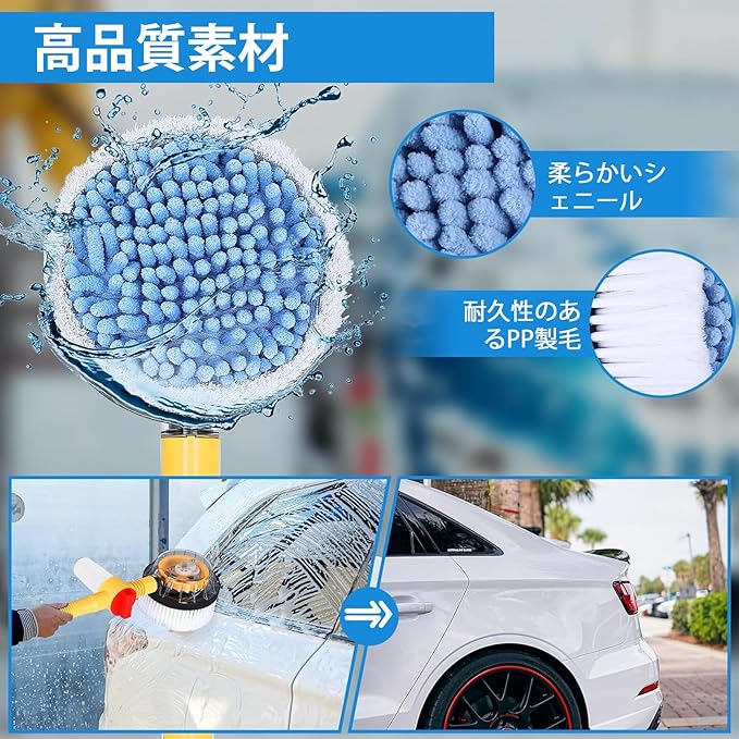 回転式洗車ブラシ 洗車モップ マイクロファイバー 自動回転ブラシ 全長100 cm 車 洗車ブラシ ボディ用 水圧 ホイールブラシ ホコリ取り 洗車グッズ 取り外し可能 高圧洗浄 洗車用品 柔らかい 傷つかない ほこり取り
