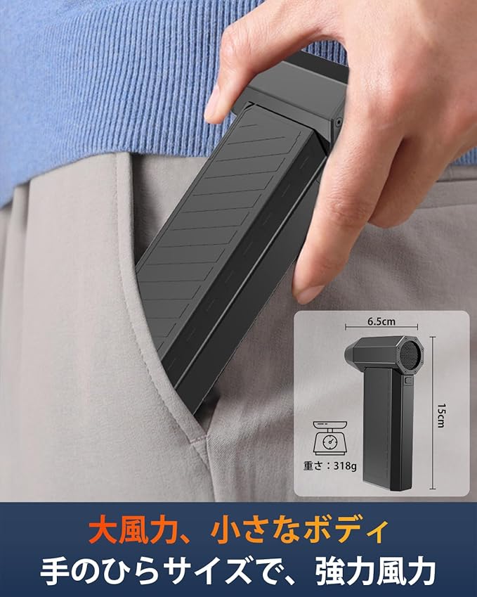 【片手で使える超小型設計】ミニブロワーサイズで車のドアポケットにも収納可能。軽量318g &滑り止めグリップ設計で、エアコン上部や天井の掃除でも疲れ知らず。アウトドアや旅行先でも大活躍します。