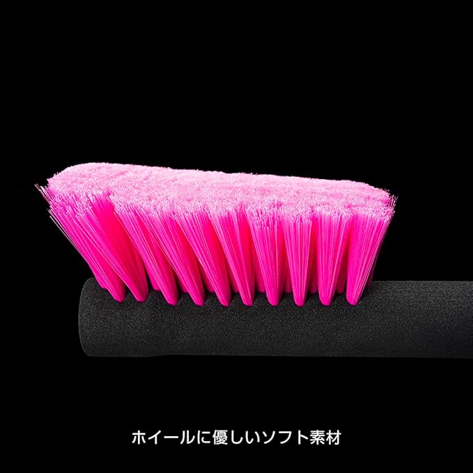 【細部まで洗浄可能】 ブラシの先端部分が長くなるようテーパードカット加工を施すことにより ナット周りやスポークの間などの細部までしっかりと洗うことが可能。 細部まで入りにくいスポンジに対して、しっかりと細部まで洗浄できます。 【軽量でらくらく洗車】 製品本体は軽量設計なので女性でもらくらく洗車できます。
