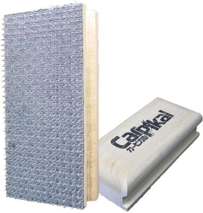 【手の形状にフィットする】握りやすい木製の柄の「ウール・ウレタンバフ兼用クリーナー」です。バフ面に強固にこびり付いたコンパウンド等を、適度な間隔のブラシでバフ面を傷つけずに除去します。