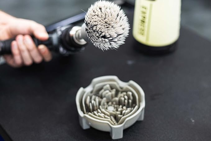 【撹拌機構で汚れをトレイにキャッチ】 独自の撹拌機構がブラシに詰まった汚れを効率よくかき出し、トレイの底にしっかりと留めます。清潔な状態を保ちやすく、繰り返し使用に最適。 【時短&簡単|水で流すだけで素早く洗浄】 使用後のドリルブラシのクリーニングがわずか数秒で完了。水をかけながら数回こするだけで、毛の奥に詰まった汚れまでスッキリ落とせます。 【毛先を傷めず優しく洗浄】 独自構造により、ブラシの毛先を傷つけることなくやさしく汚れを落とします。高価なウルトラソフトブラシも安心して洗える設計です。 【全サイズのドリルブラシに対応|フリーサイズ設計】 スタンダード、ラージ、XLなど、どんなサイズのドリルブラシでもしっかりフィット。多種多様なブラシに対応するフリーサイズ仕様で、1つ持っておけばあらゆるブラシに対応可能。 【Detail Factory純正|ディテーラー必携のプロツール】 米国の人気ブランドDetail Factory純正アイテム。こだわるプロや上級ユーザーからの信頼も厚く、洗車好きの必携アイテムです。