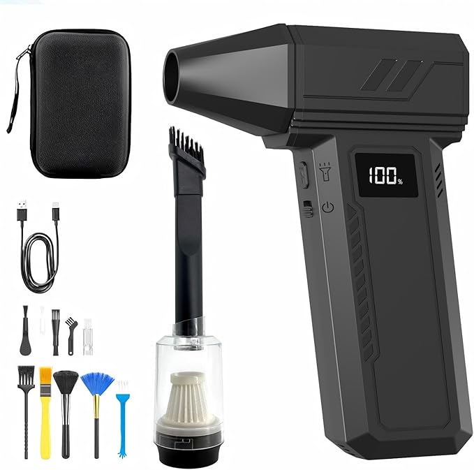 エアダスター 電動エアダスター、暴力ターボファン、13枚のブレード、20000mAh、130000RPM、ミニジェットヘアドライヤー、強力なファン、100段階調整可能な速度、屋外照明、ディスプレイ付き、Type-C充電、軽量プラスチックで変形しにくい、瞬間推力1.5kg/s、風速900W 41m/s (黑)