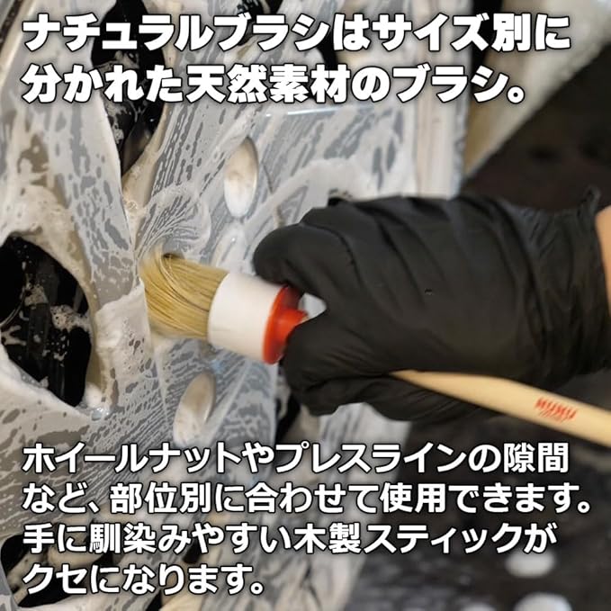 POML ぬぬふぁくとりー NUNU Natural Brush 使い分け可能なサイズ別5本セット 天然素材ディテールブラシ ウッドスティック 豚毛ブラシ 洗車 洗車用品 カー用品 ポムル ぬぬナチュラルブラシ