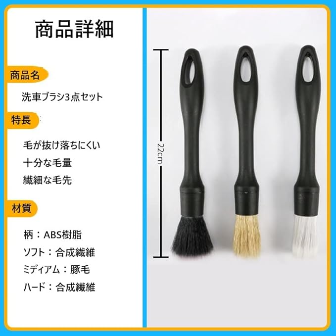 洗車ブラシ ディテールブラシ ホイールブラシ タイヤブラシ 自動車 バイク 洗車 掃除 車体 内装 外装 ソフト ミディアム ハード 3本セット