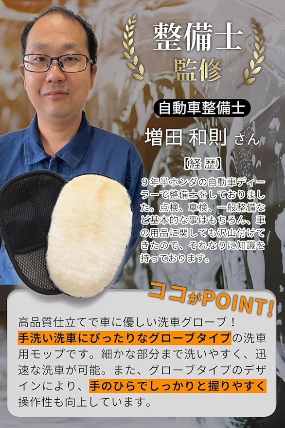 【整備士監修】 洗車グローブ 洗車ミット ムートン 洗車 ムートングローブ 洗車道具 「ふわふわで心地よい肌触り、車を傷つけずにやさしく洗いあげる」 (4)