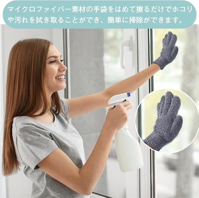3.マイクロファイバー素材の手袋をはめて擦るだけでホコリや汚れを拭き取ることができ、簡単に掃除ができます。