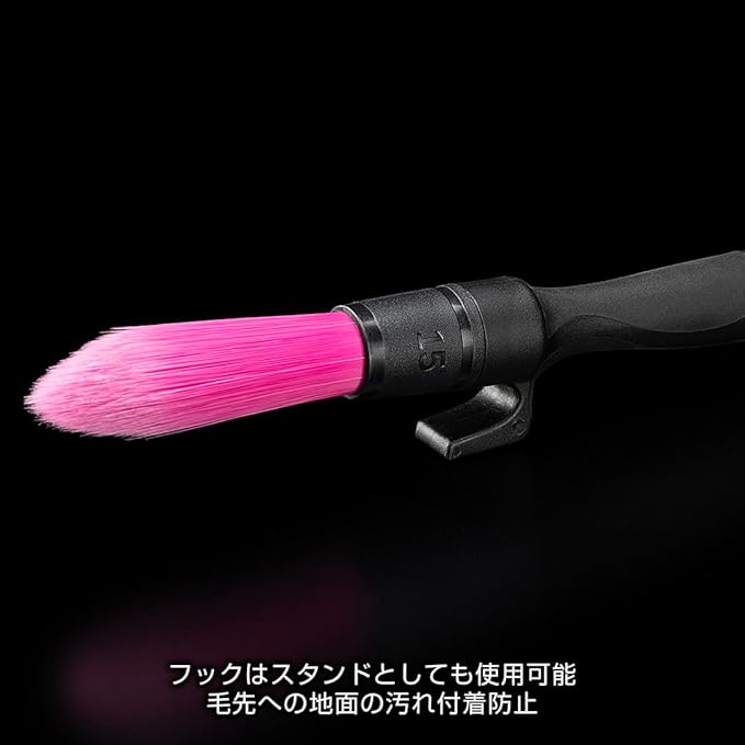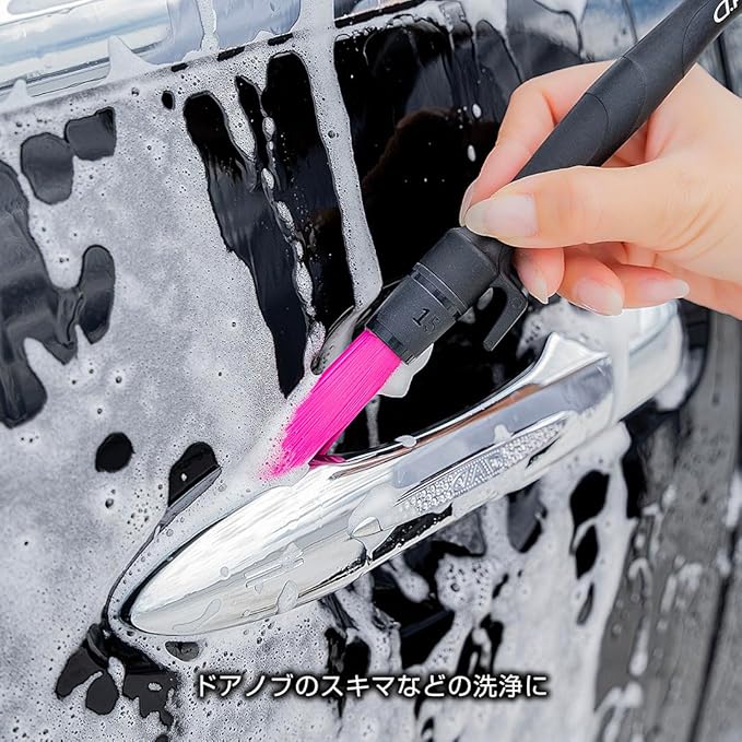 【細かいスキマに入り込む筆型ブラシ】 筆型ブラシはクルマのドアノブのスキマやヘッドライト周り、ホイールのナットホールなど、細かな部分の洗浄に。 また、内装の細かなスキマなどのホコリ取りにも最適。
