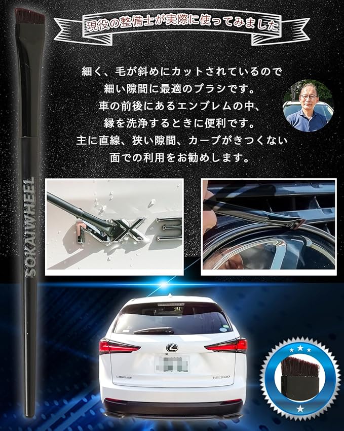 【整備士監修】プロ仕様 洗車 ブラシ ディテール ブラシ 【4本セット】 エンブレム 隙間 細部ブラシ 内装ブラシ OA機器 sokaiwheel