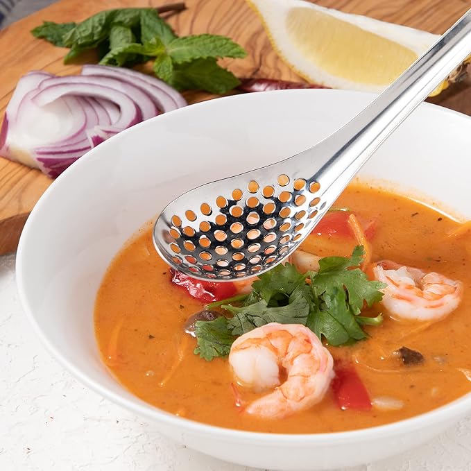 遠藤商事 TKG レンゲスプーン 寸法 (長さx幅x高さ)16.5 x 4 x 12.5 cm 穴なし 籐ヅル巻で取っ手が熱くなりにくい 錆に強いステンレス製で衛生的 ラーメンの具掬いに重宝 日本製 業務用 QLV02001