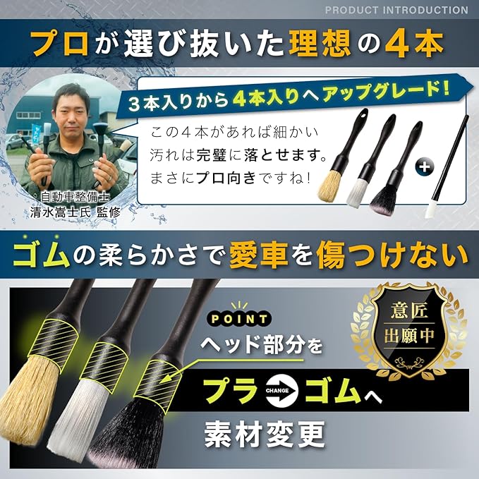 【所ジョージの世田谷ベース掲載】洗車ブラシ ゴム仕様 4本セット 洗車 ディティールブラシ SB-4C
