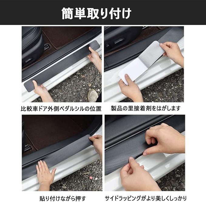 【製品の特徴】:ドアシルプロテクターが既存の傷をカバーし、オン/オフの過程で車を傷、引っかき傷、汚れなどから保護します。