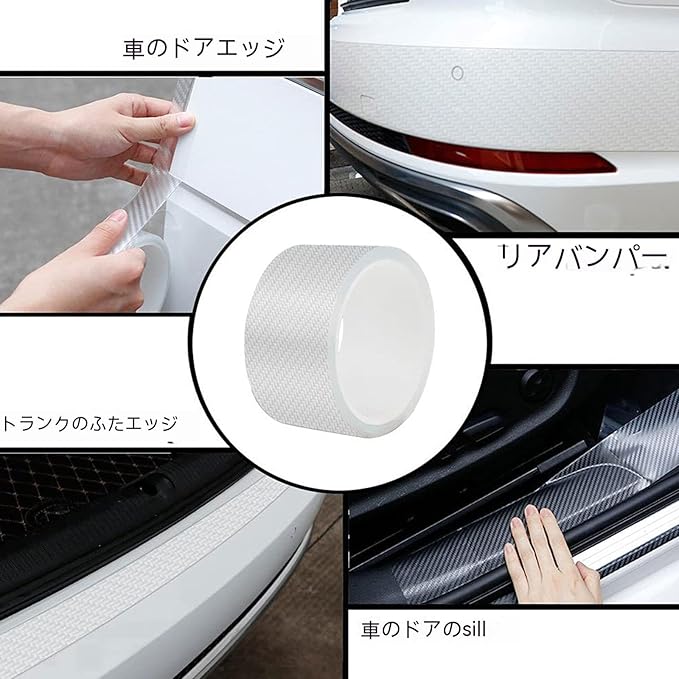 透明ベース 車用ドアフィルム プロテクターフィルム プロテクションフィルム ボディ ドアエッジモール 保護フィルム サイドステップガード スカッフプレート バンパーガード カーボン キズ防止 テープ式 傷 汚れ防止 防衝撃 汎用 簡単装着 (幅7CM*5M)