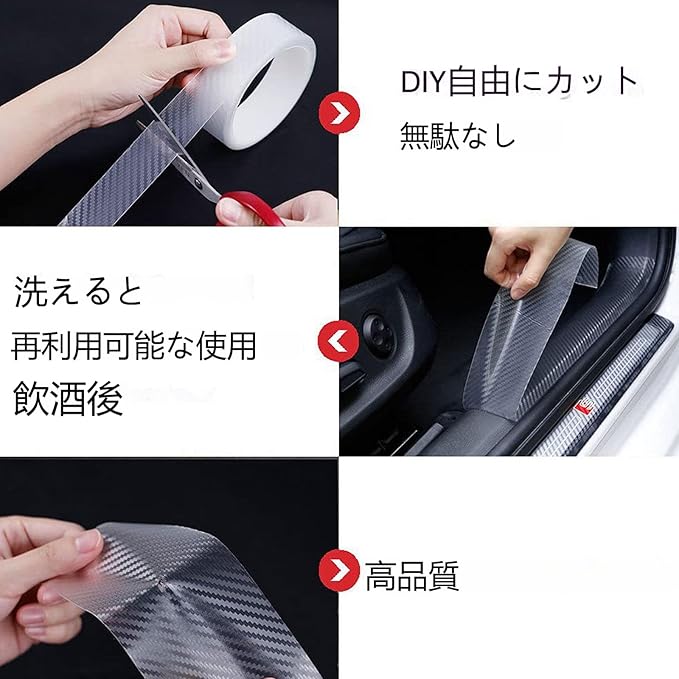 【傷防止】 厚みのある透明フィルムで、車ドアの傷防止、汚れ防止。透明度の高いフィルムで、貼っているのが見た目には分かりにくくて、各色の車に付けても違和感がありません