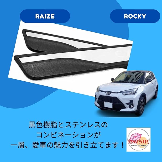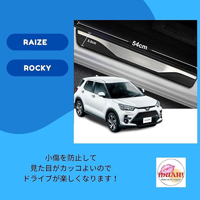 MUAH! トヨタ ライズ RAIZE toyota ダイハツ daihatsu ロッキー スカッフプレート サイドシルプレート ドアシルプレート エントランスモール インテリア 内装 ドレスアップ カスタム パーツ ステップガード カバー プロテクター トリムプロテクターガード