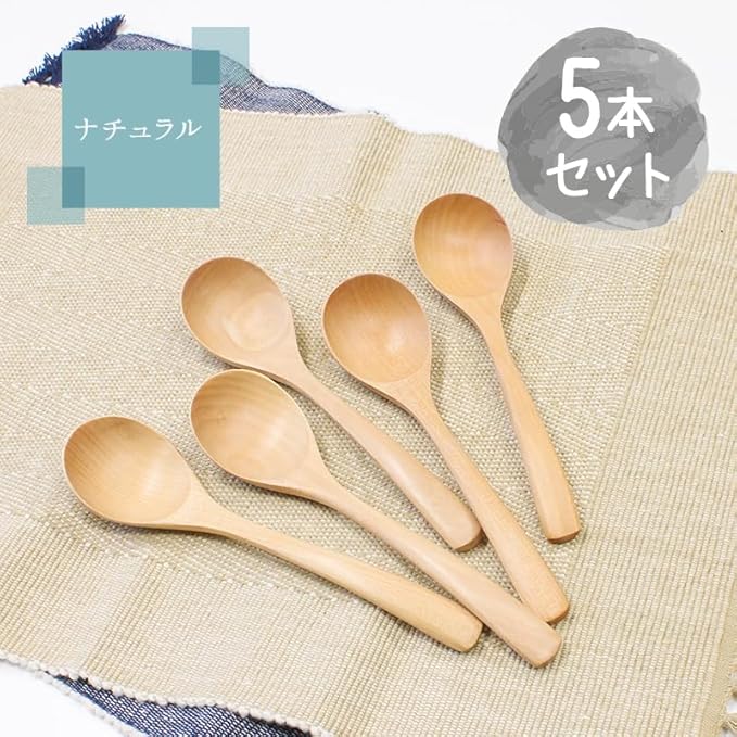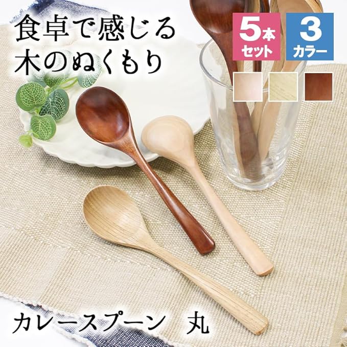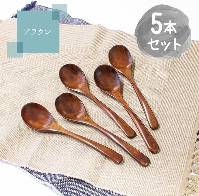スプーン カレースプーン 木製 カトラリー 5本セット カトラリーセット 木 18cm おしゃれ 大きいスプーン (ブラウン)