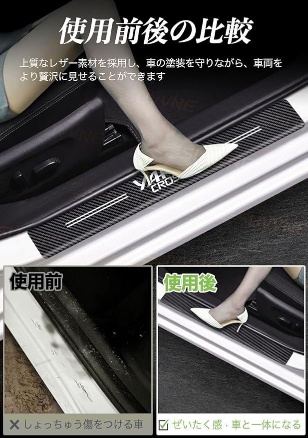 SUVVNE(スヴニ) ヤリスクロス10系 15系 スカッフプレート PUレザー素材 YARIS cross(2020年8月~) サイドステップガード 外側スカッフプレート 内装カスタムパーツ 装着簡単 日本語取扱説明書付き 4点セット
