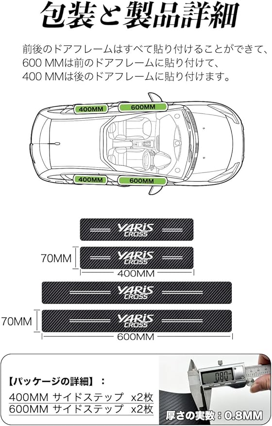 [対応車種] 適合新型ヤリスクロス 10系 15系 (2020年8月~) 。ご注意ください:護板を正しく取り付け、確実に固定しておくことで、走行中に緩むことがないようにしてください。【パッケージ内容】車用 サイドステップガード*4、日本語取扱説明書*1
