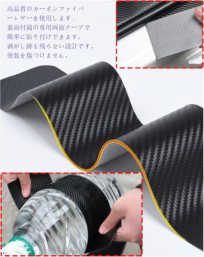 アップグレード材料:従来の材料とは異なり、高品質のカーボンファイバーレザーを使用します。これは、厚く、防水性があり、耐摩耗性があり、耐久性があります。裏面付属の専用両面テープで簡単に貼り付けできます。剥がし跡も残らない設計です、塗装を傷つけません。