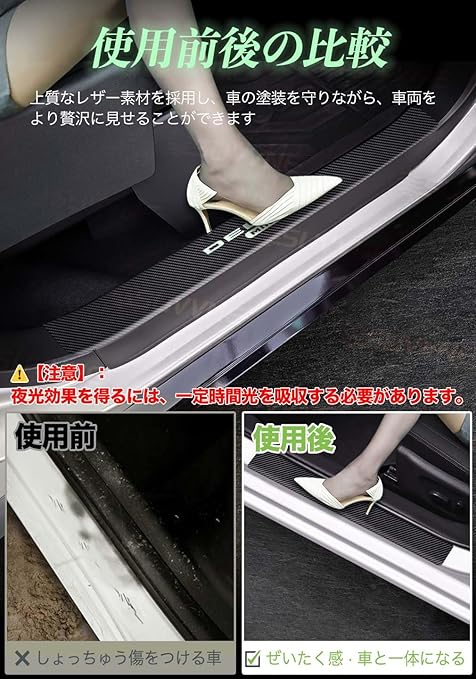 SUVVNE(スヴニ) デリカミニ B3系 スカッフプレート 夜光 サイドステップガード デリカミニ B3系 (2023年5月~現行)レザー素材 サイドステップ 防水 防汚れ 防傷 装着簡単 日本語取扱説明書付き 4点セット