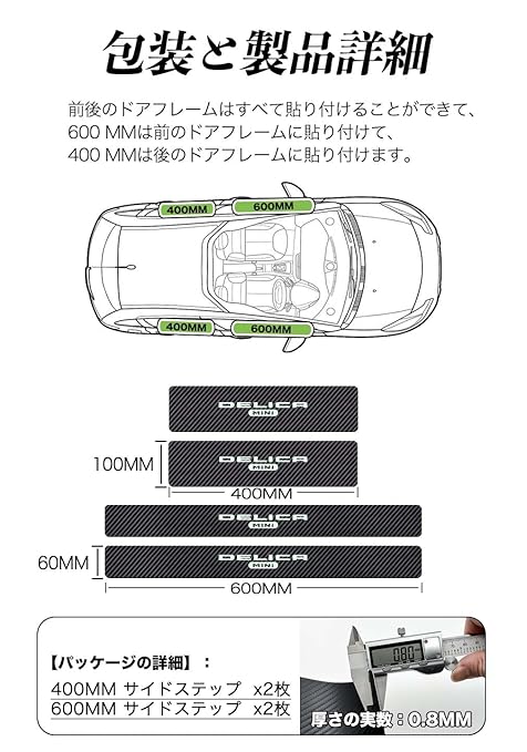 [対応車種]:適合デリカミニ Delica mini B34A B35A B37A B38A B3系 (2023年5月~現行)。ご注意ください:護板を正しく取り付け、確実に固定しておくことで、走行中に緩むことがないようにしてください。定期的に護板を清掃して、その夜光効果と外観を維持してください。【パッケージ内容】車用 サイドステップガード*4、日本語取扱説明書*1