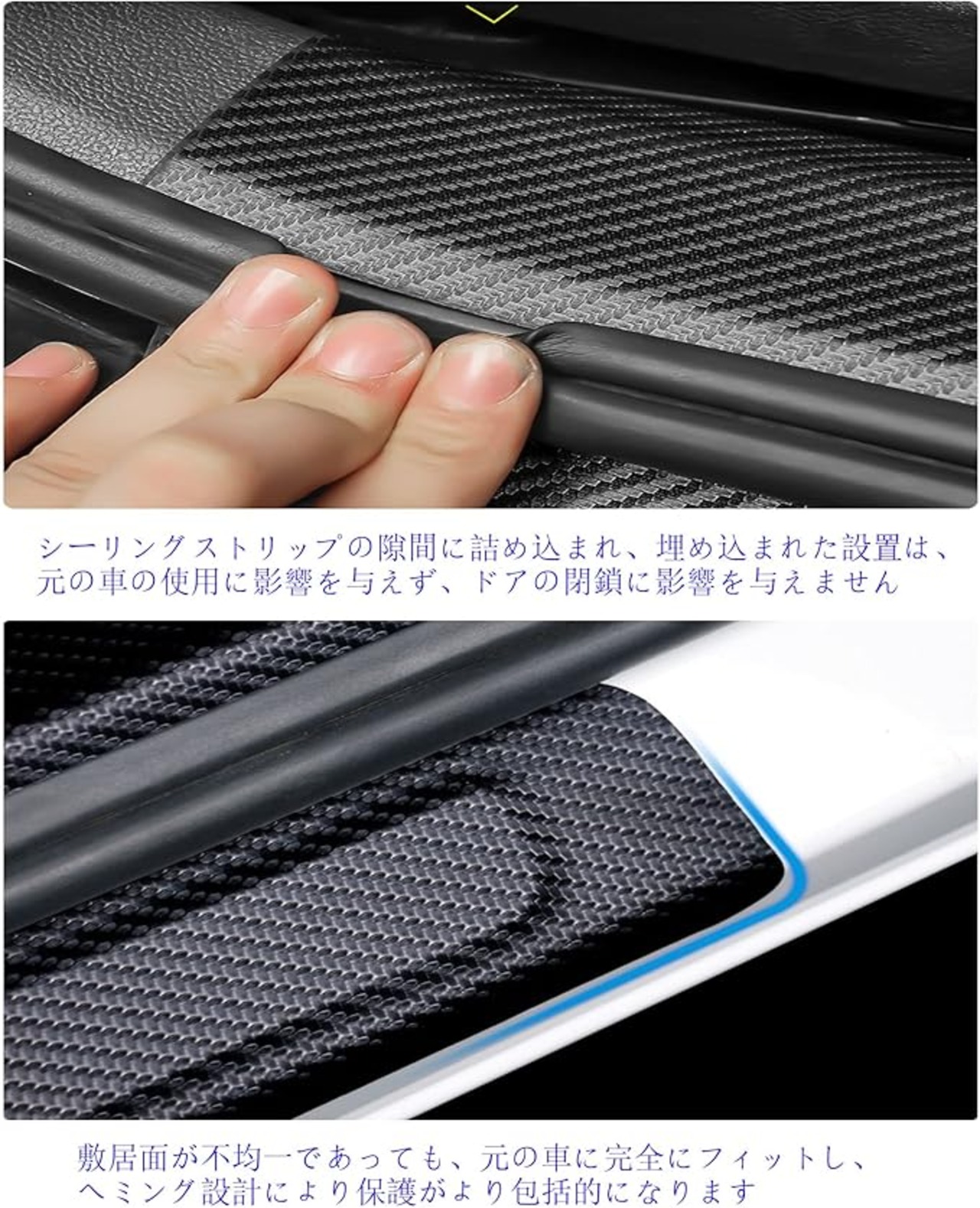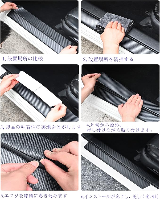 アップグレード材料:従来の材料とは異なり、高品質のカーボンファイバーレザーを使用します。これは、厚く、防水性があり、耐摩耗性があり、耐久性があります。裏面付属の専用両面テープで簡単に貼り付けできます。剥がし跡も残らない設計です、塗装を傷つけません。