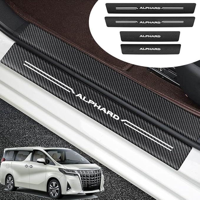 トヨタ アルファード 30系2015年1月~現行 スカッフプレート サイドステップガード 専用 スカーボン調の革 スカッフプレート サイドステップ外側 ドアスカッフプレート ステップガード カバー ドア敷居トリムプロテクターガード ドア敷居プロテクター ステップガード 防キズ 防汚れ 4点セット