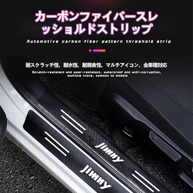 新Jimny サイドステップガード スカッフプレート 全車種対応 高級内装パーツ 金箔仕上げ 金メッキ技術 強力粘着テープ付き 防水 防汚 防傷 簡単取り付け 4点セット 内装アクセサリー ぎん
