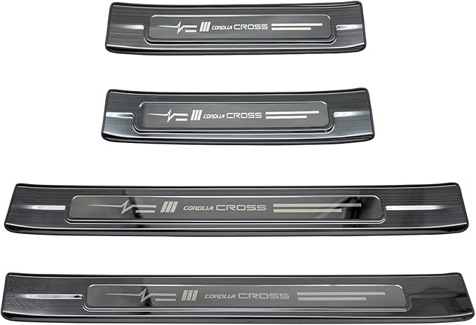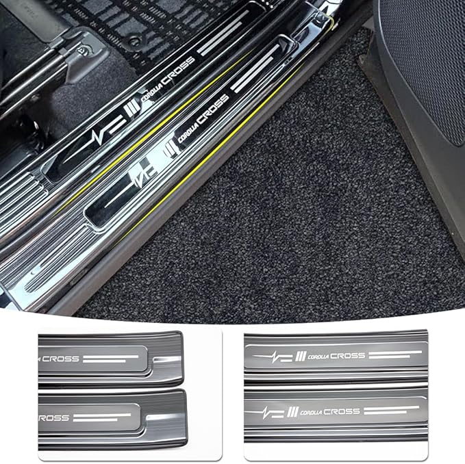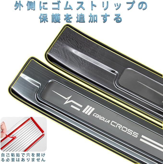 MEKOMEKO 新型 トヨタ カローラクロス 専用 外側スカッフプレート サイドステップ スカッフプロテクトシートドアシルプレートインサイド インテリアパネル アクセサリー 汚れ防止 傷防止 ステンレス PCS 新型 Corolla cross 2021年9月-2025年5月マイナーチェンジ後対応【外側ブラックヘアライン】CRS-MKW4B