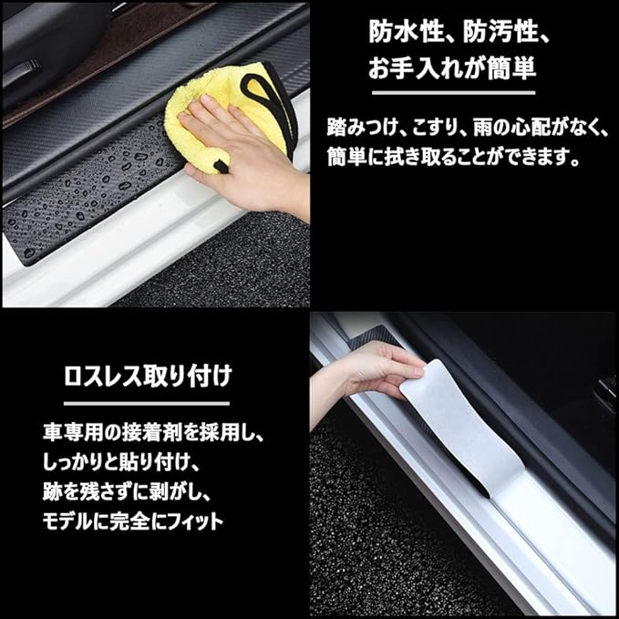 【製品の特徴】:ドアシルプロテクターが既存の傷をカバーし、オン/オフの過程で車を傷、引っかき傷、汚れなどから保護します。