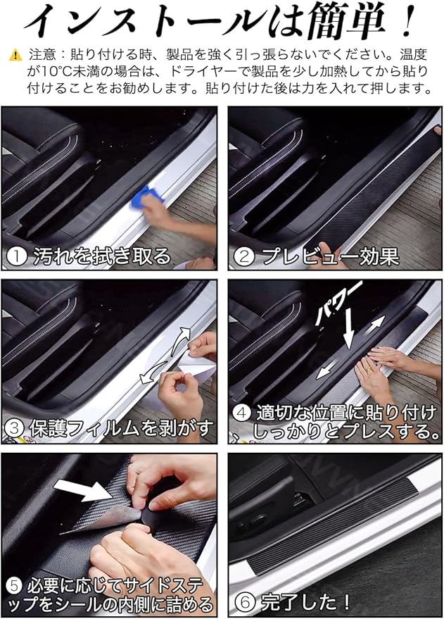 [使いやすい] 車専用の両面テープを使用すると、塗面を損傷せず、ドリルをする必要もなく、車に直接貼り付けるのはとても便利です。清掃は非常に簡単です:濕れ布で拭くだけです。(装飾テープにしわがあり、平らに押し付けることが難しい場合は、熱風乾燥機で乾燥させるだけで平らに押し付けることができます)。
