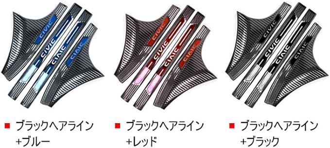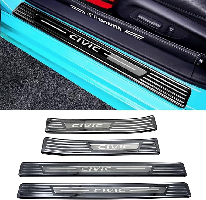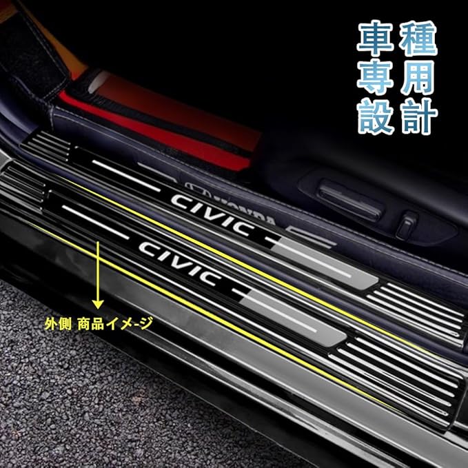 MEKOMEKO ホンダ シビック 11代目 専用 スカッフプレート サイドステップ スカッフプロテクトシートドアシルプレートインサイド インテリアパネル 汚れ防止 傷防止 外側 ステンレス 4PCS 新型 11代目 CIVIC FL1【外側&ブラックヘアライン】C11-WMKTB